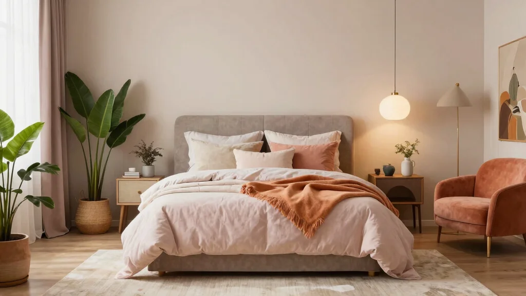 To make this palette sing, start with terracotta on one wall or a bold headboard. Pair it with beige and taupe for calm balance. Layer textured fabrics such as tweed, linen, or knit textiles to add warmth. Add clay pots or woven baskets to bring in natural touches.