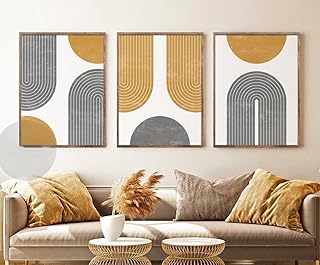 JESC Minimalist Wall Decor 3 Pieces Abstract Mustard Yellow Gray Geometr…