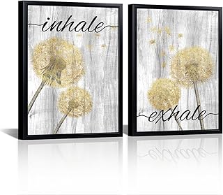 Yellow And Gray Dandelion Wall Art Framed Set of 2 Bathroom Wall Decor I…