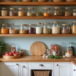 Keep surfaces clear with simple shelves and smart storage. A small cabinet or wall rack hides everyday items while you still reach them fast. Limit what you display to a few natural decor elements that feel peaceful.