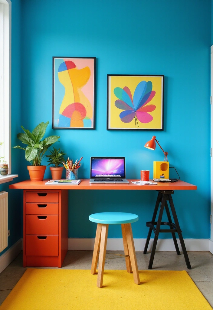 A color pop workspace isn’t afraid to experiment with bright hues and bold patterns. Picture a bright blue wall, a vibrant desk, and colorful accessories that inspire joy and creativity. This approach makes your workspace feel joyful and energetic.