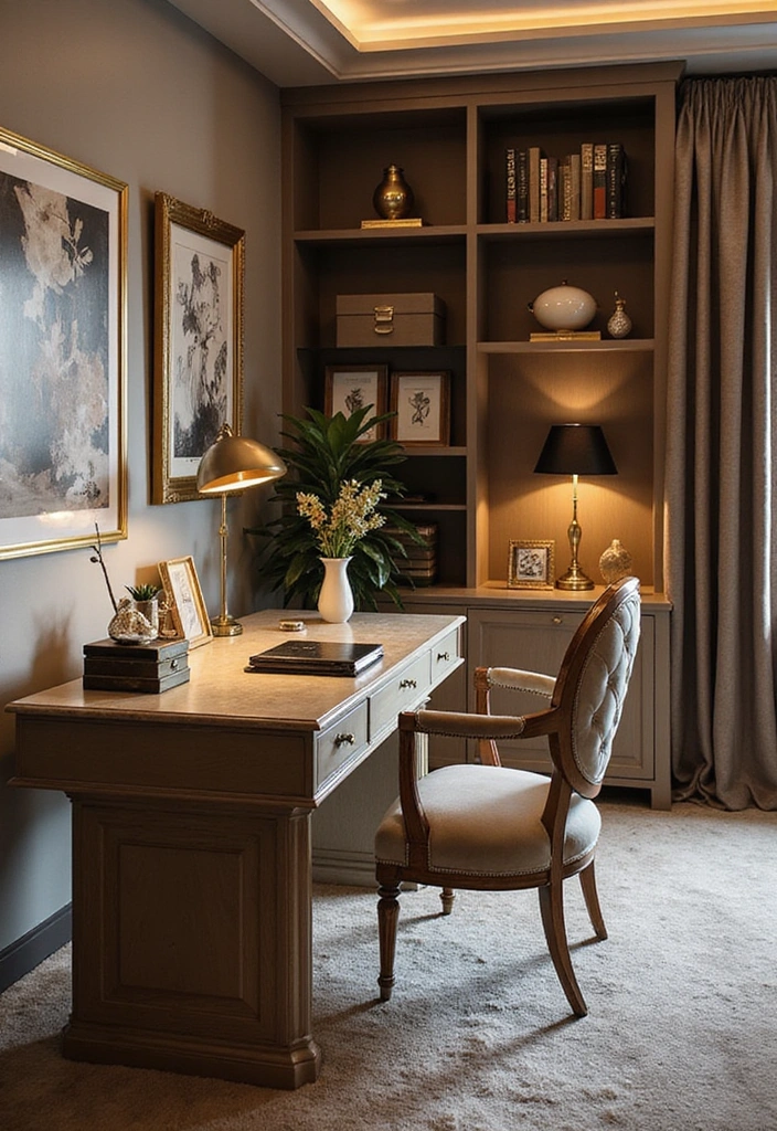 – Incorporate metallic accents in your decor, such as using decorative trays to organize your desk essentials while adding a touch of elegance.