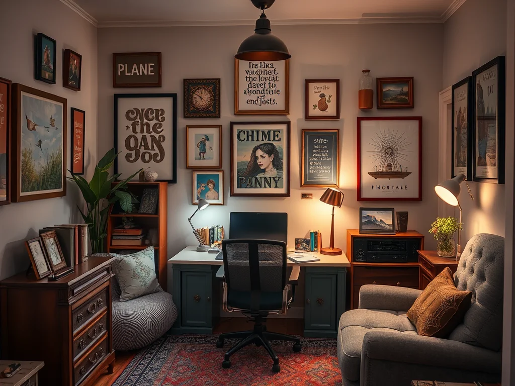 Finally, hang some unique wall art to express your personality. A gallery of framed art or woven wall hangings can create a focal point that inspires creativity and makes your workspace feel truly yours.