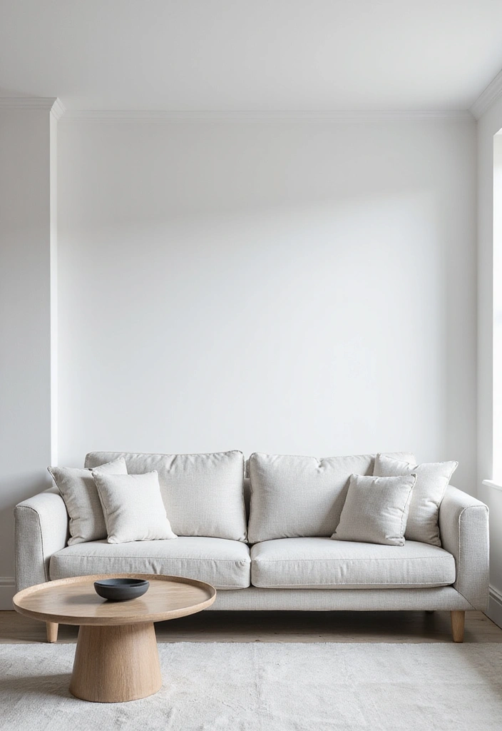 To enhance your minimalist approach, stick to a neutral color palette with whites, grays, and natural tones for a balanced look. The JACH storage ottoman is an excellent choice for maintaining an organized appearance while offering additional seating and storage.