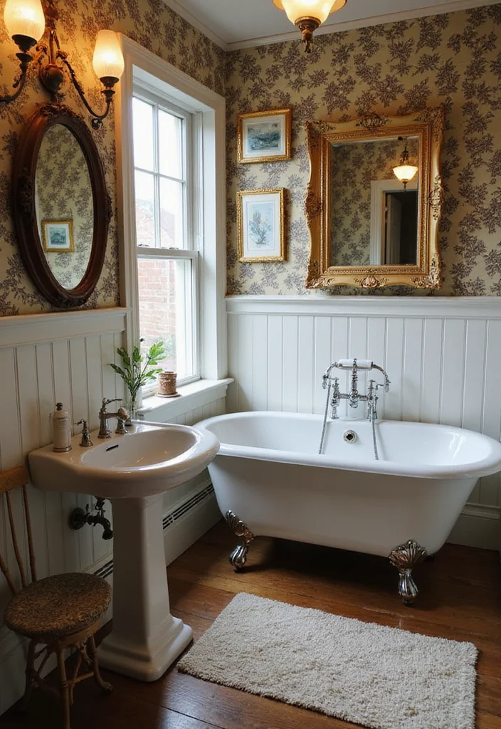 – Use classic prints in wallpaper or flooring to enhance the vibe.