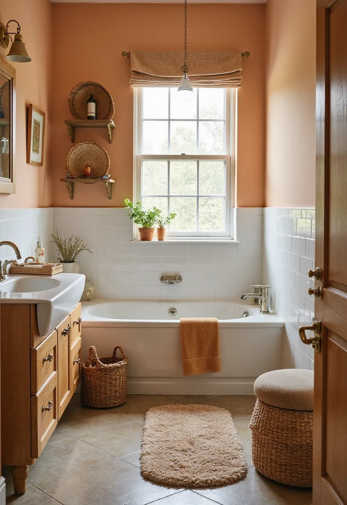This design approach enhances the overall aesthetic. Blending vintage charm with contemporary elements creates a bathroom that feels both inviting and rich in character.