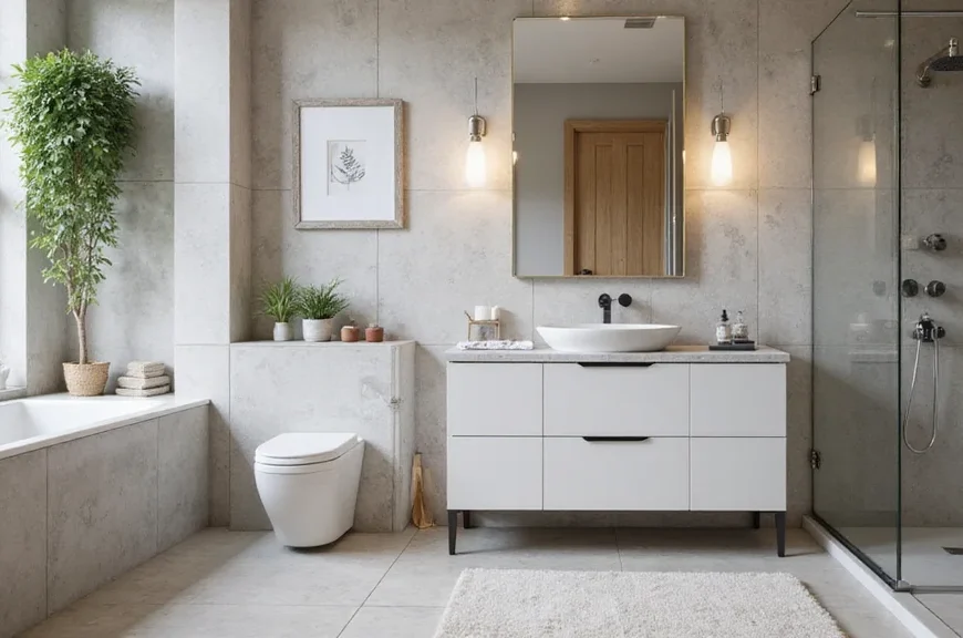 Floating fixtures are perfect for small modern bathrooms, creating an illusion of space. A floating vanity adds style without overwhelming the area, allowing for easy cleaning beneath. Wall-mounted sinks and toilets further streamline the look, making the room feel less cluttered.