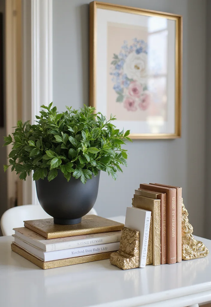 – Select unique items like a vintage globe or a sculptural object to spark conversation.
