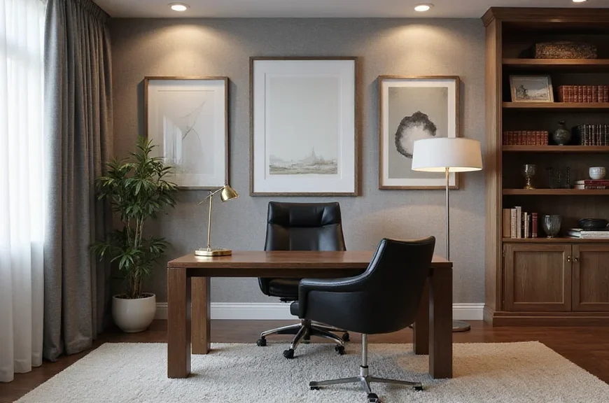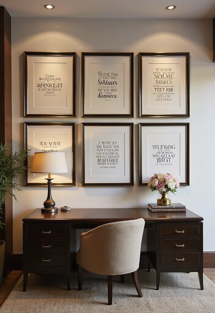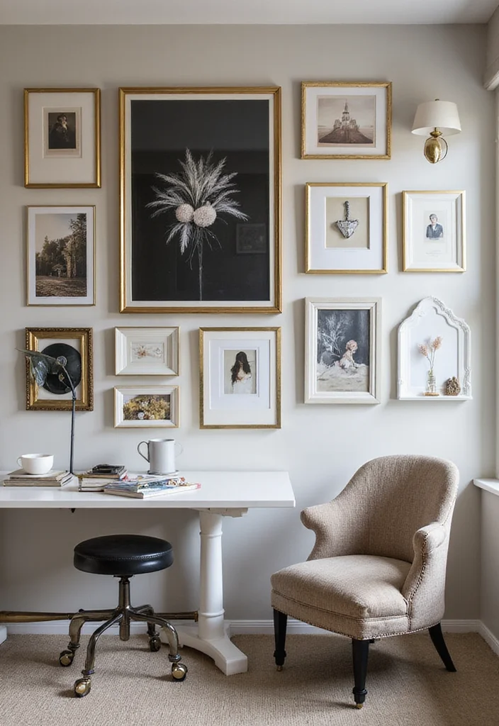 A gallery wall not only beautifies your space but also fosters an inspiring atmosphere, making your home office feel personal and luxurious.