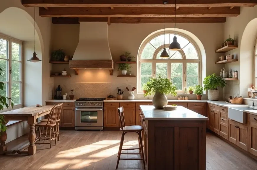 Arched windows are a beautiful way to invite natural light into your kitchen. These windows add charm and grace, enhancing the overall mood of the space. Placing an arched window above the sink or in a cozy breakfast nook creates a lovely view while making your kitchen feel larger. Current trends recommend framing these windows with light curtains or decorative plants for a fresh look.